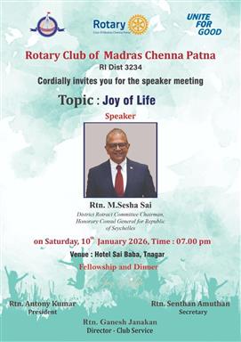 “Joy of Life” was the topic for the month, and Rtn. M. Sesha Sai de. . .